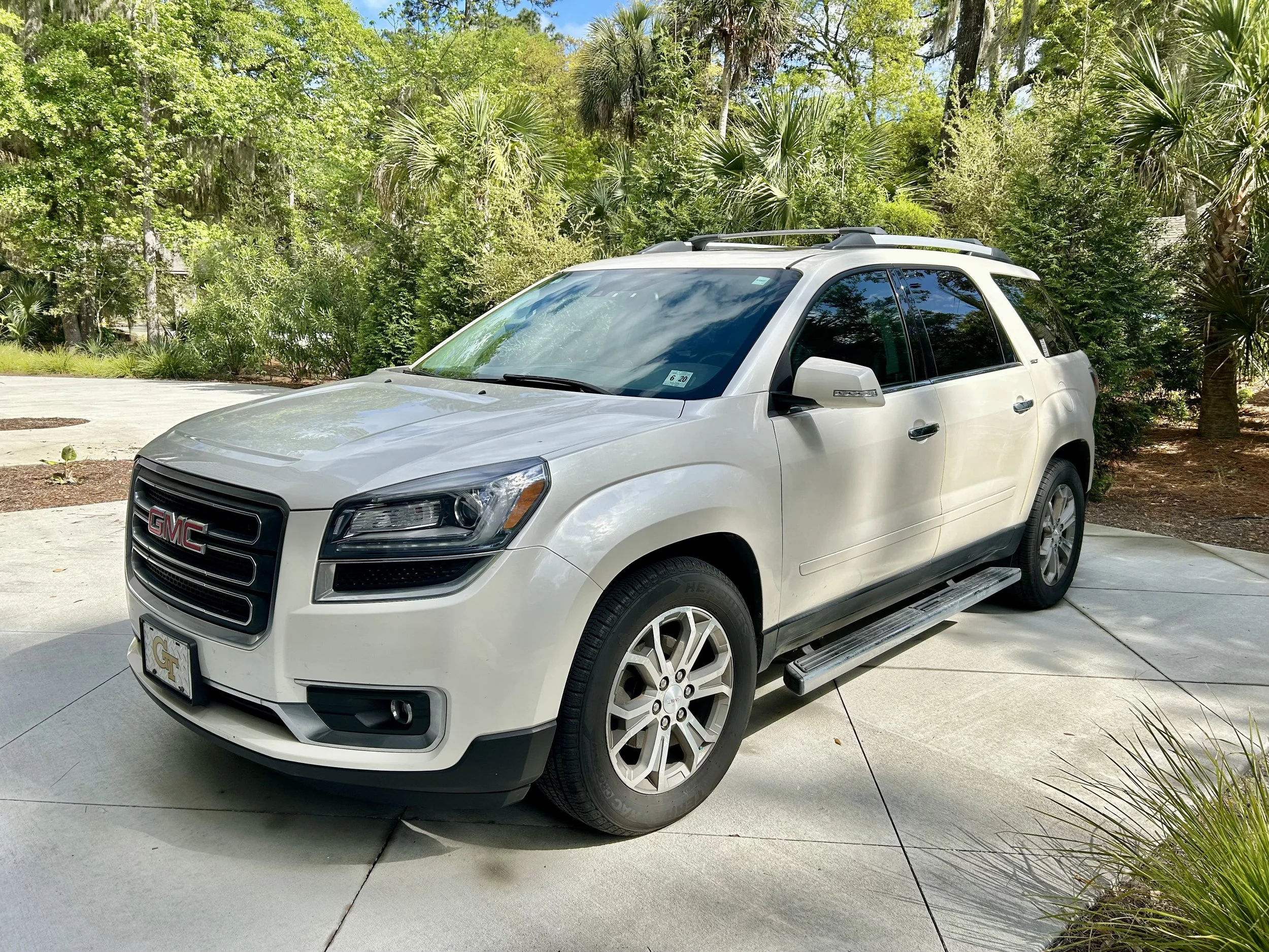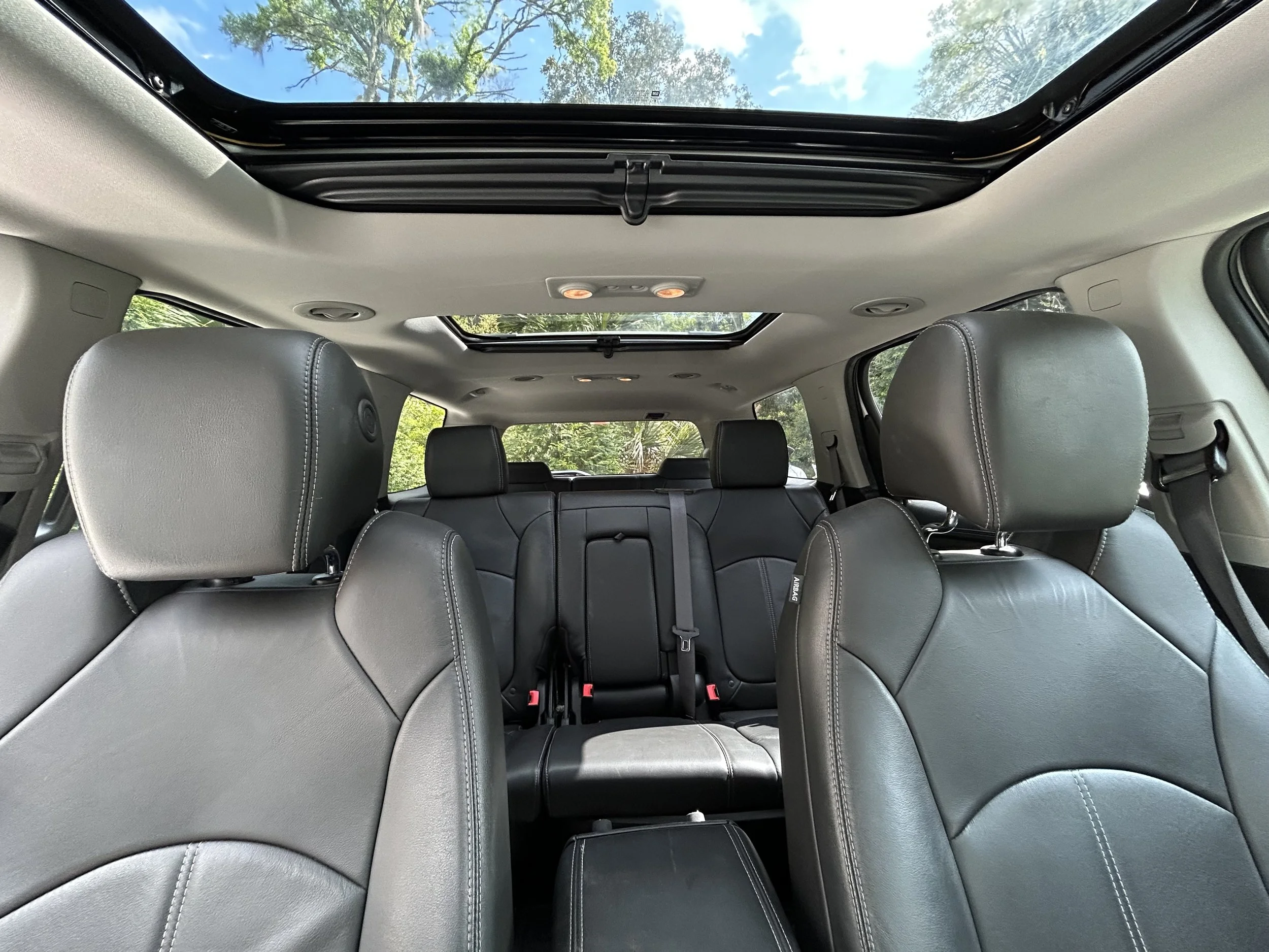 Your private tour with Charleston Jewish Tours takes place in a GMC Acadia — a mid-size premium SUV carefully chosen for its comfort, safety, and style. The vehicle features plush black leather seating, dual sunroofs that let in natural Lowcountry light, and all-wheel drive for a smooth ride across Charleston’s historic streets.